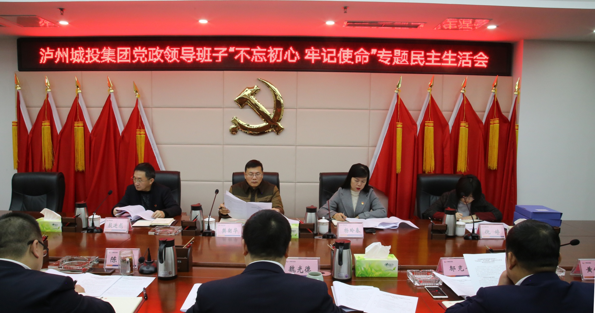 12月10日,瀘州城投集團召開黨政領(lǐng)導(dǎo)班子“不忘初心、牢記使命”專題民主生活會。會議由集團黨委書記、董事長魏光德主持,市委第一巡回指導(dǎo)組副組長樊朝華,市不動產(chǎn)登記中心信息科干部倪婷,兩江新城黨工委委員、兩江新城管委會副主任楊玲春,集團監(jiān)事會主席殷廷彪到會指導(dǎo)并作點評發(fā)言,集團黨政領(lǐng)導(dǎo)班子成員參加會議。